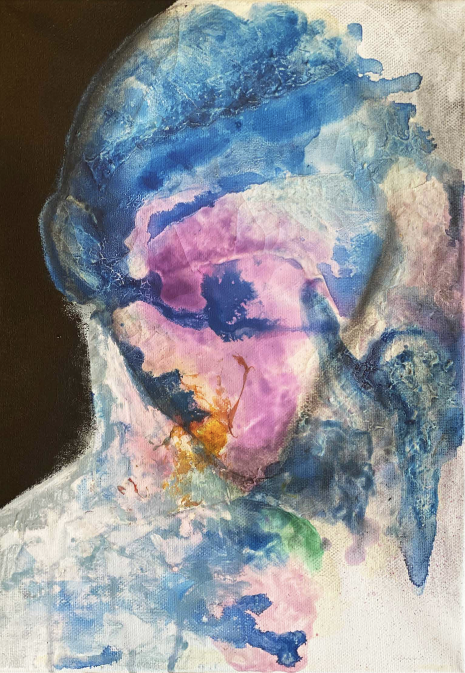 An Artwork by Artist Abeer Al Mefleh, ink & collage on Canvas, 35x25cm,2020.